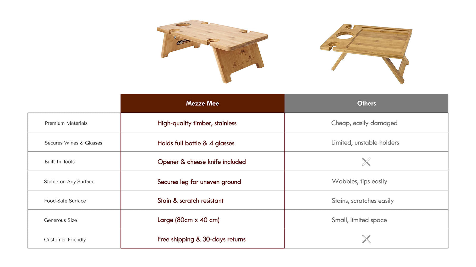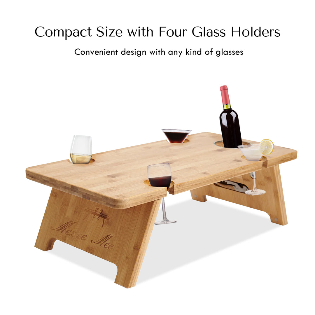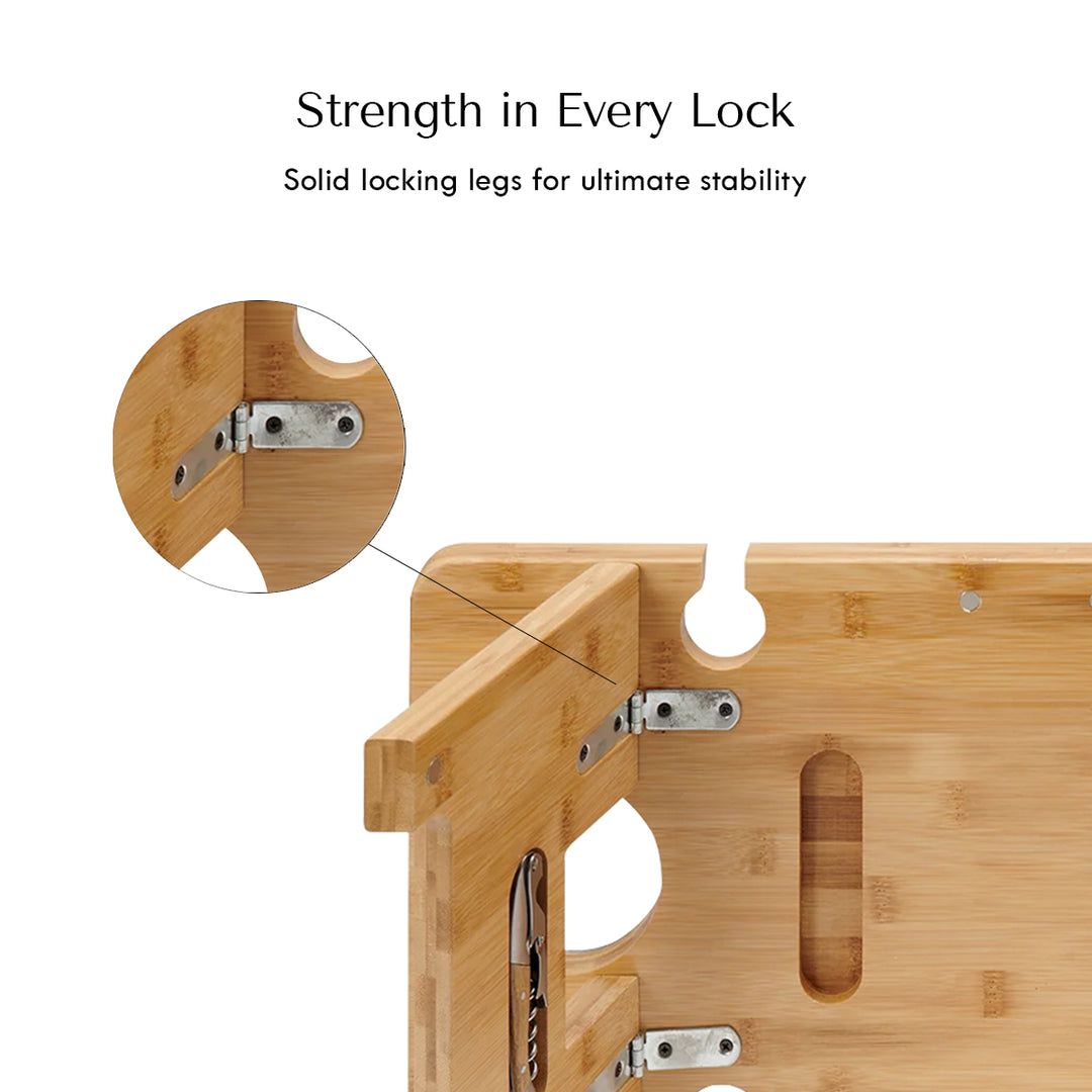 Our wine picnic table's robust locking legs ensure a steady foundation on any surface, no matter how uneven. Enjoy worry-free wine tastings and picnics, knowing your table will stay put through countless uses.