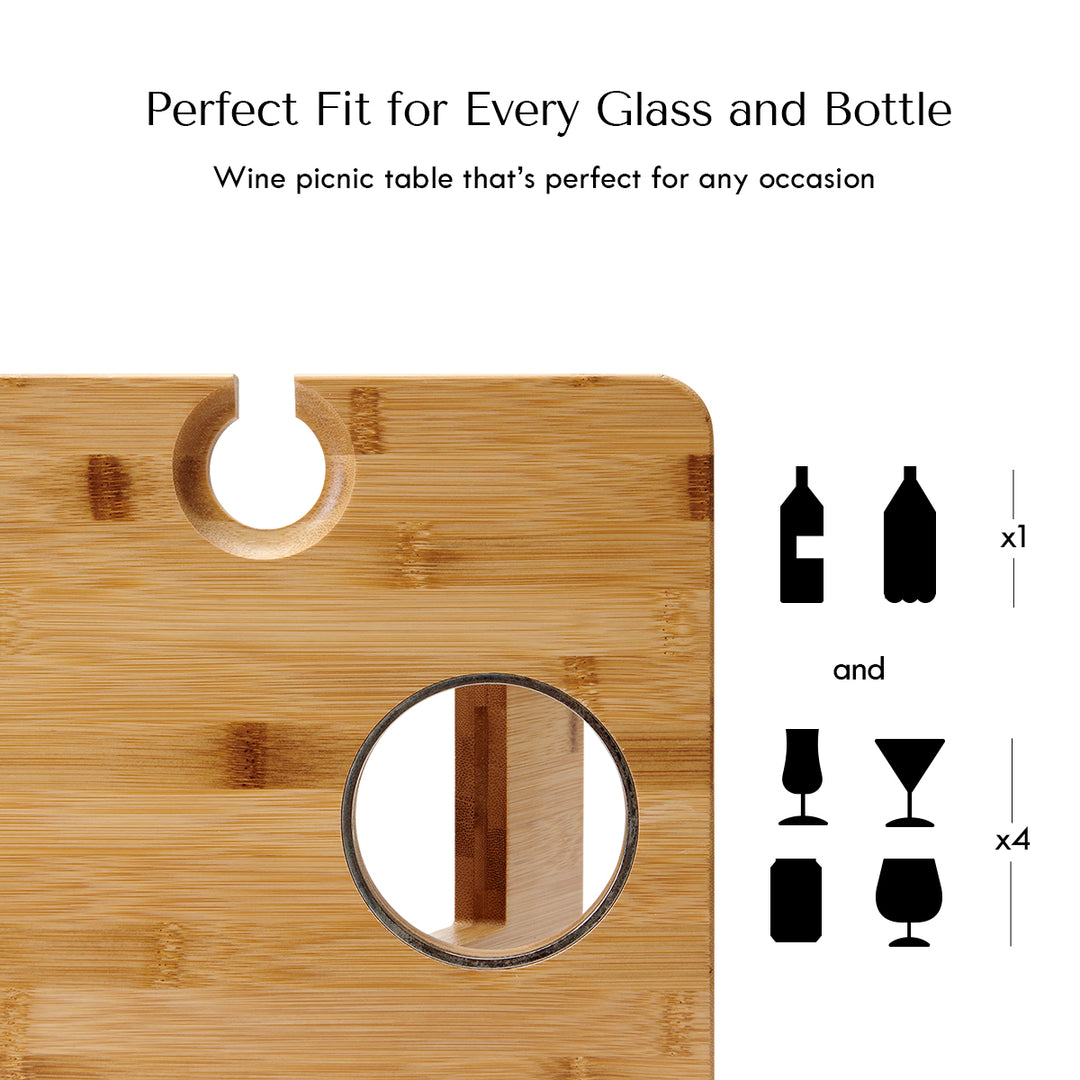 Enjoy your favorite wines in style with our durable picnic table. Its sturdy construction and convenient design make it the ideal companion for any outdoor gathering.